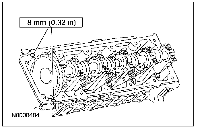 NOTE: If the engine front cover is not secured within 4 minutes, the sealant must be removed and the sealing area cleaned with silicone gasket remover and metal surface prep. Follow the directions on the packaging. Allow to dry until there is no sign of wetness, or 4 minutes, whichever is longer. Failure to follow this procedure can cause future oil leakage.