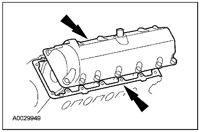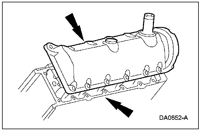 Apply a bead of silicone gasket and sealant along the cylinder head-to-cylinder block surface at the locations shown.