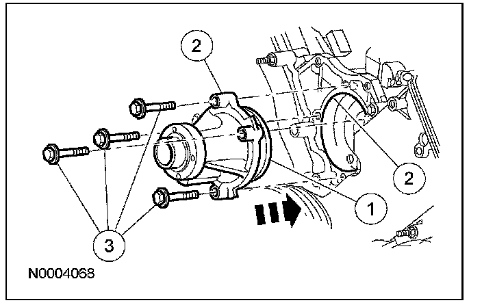 61. CAUTION: Do not rotate the coolant pump housing once the coolant pump has been positioned in the cylinder block. Damage to the O-ring seal will occur.