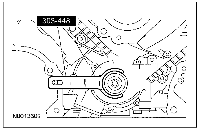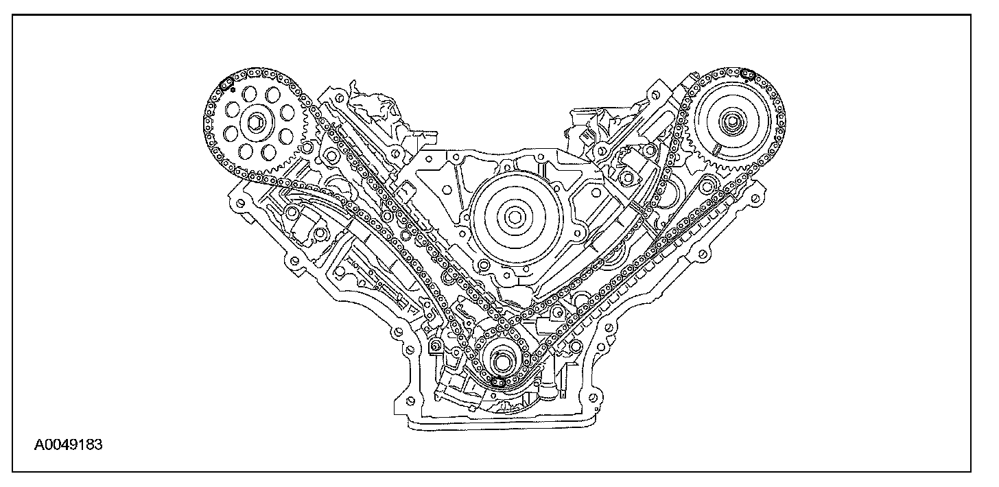 6. CAUTION: Unless otherwise instructed, do not rotate either the crankshaft or the camshafts, when the timing chains are removed and the cylinder heads are installed. Severe piston and valve damage will occur.