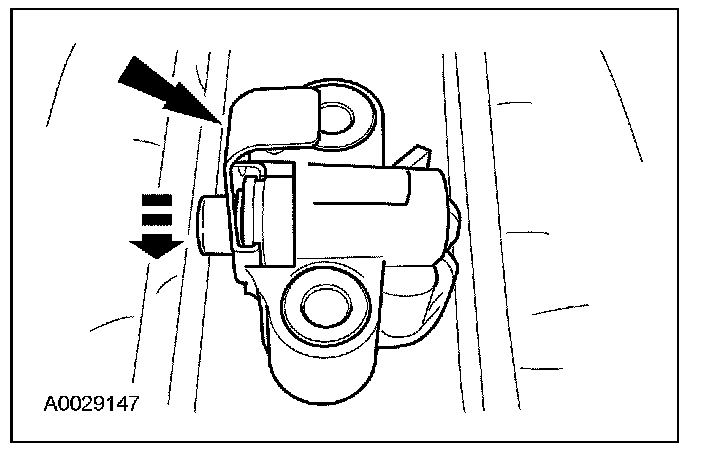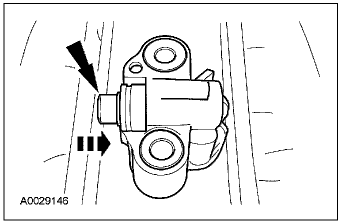 2. Install a retaining clip on the tensioner to hold the plunger in during installation.