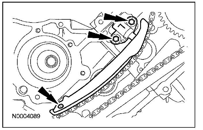 10. NOTE: The LH timing chain tensioner arm has a bump near the dowel hole for identification.