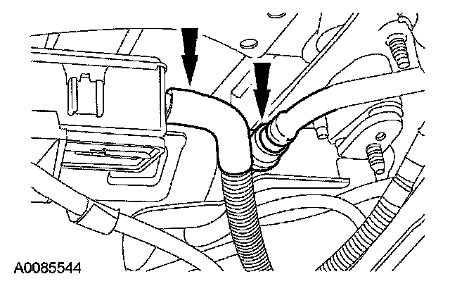 4. Disconnect the fuel vapor vent hose and fuel vapor tube-to-EVAP canister quick connect coupling.