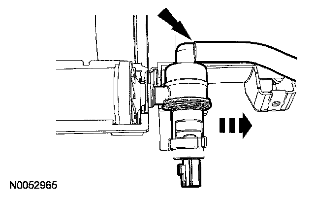 Disconnect the EVAP canister vent solenoid-to-dust separator hose and remove the canister vent solenoid from the EVAP hydrocarbon filter canister and EVAP canister bracket.