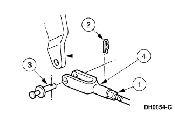 1 Install the clevis pin through the adjusting clevis and the parking brake lever.