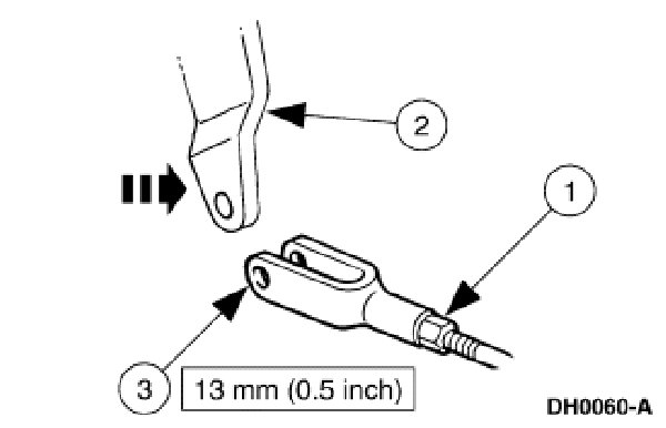 3 Tighten or loosen the adjusting clevis until the adjusting clevis hole lines up with the parking brake lever hole, and then loosen the adjusting clevis.