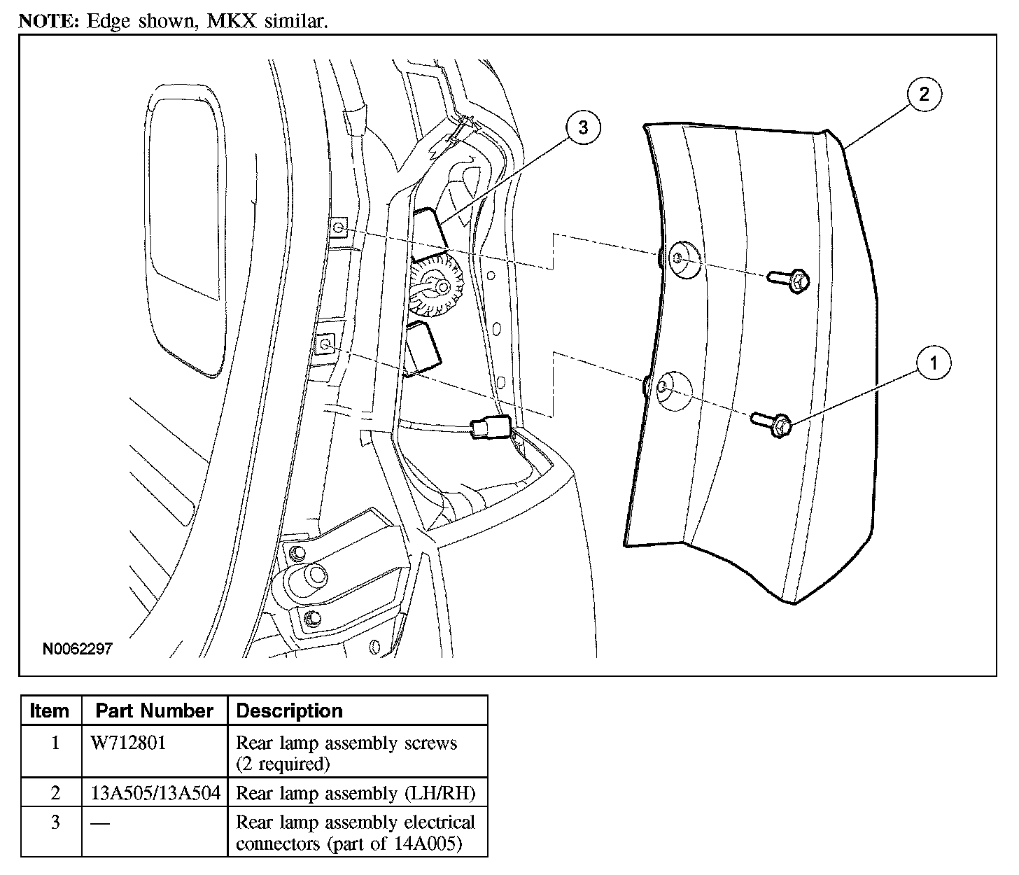 1. NOTE: The rear lamp assembly is held in place by snap-type retainers. The lamp should be pulled straight and rearward to remove.