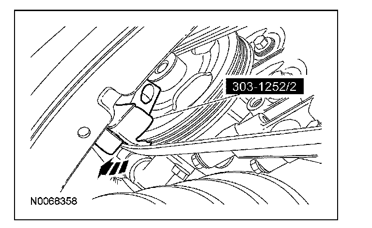 5. Install the special tool between the power steering pump belt and pulley, turning the crankshaft bolt clockwise to remove the power steering belt.