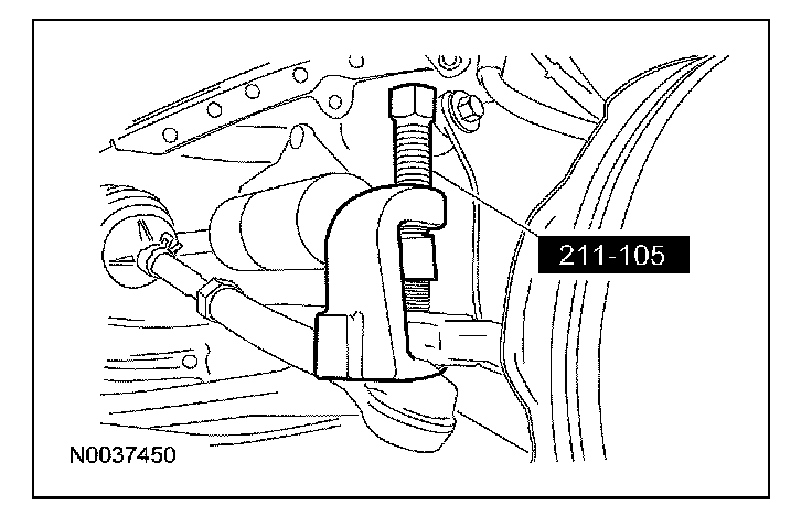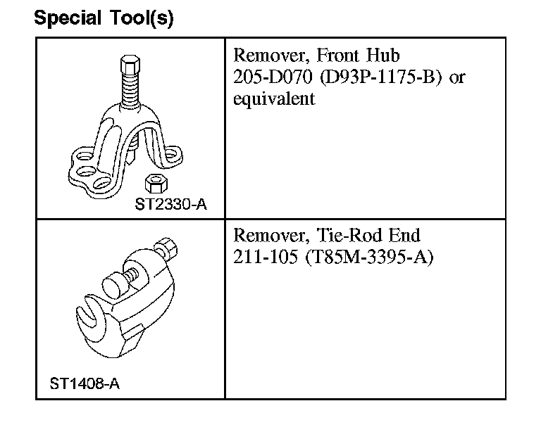 8. CAUTION: Do not use a hammer to separate the tie-rod end from the wheel knuckle or damage to the wheel knuckle can result.