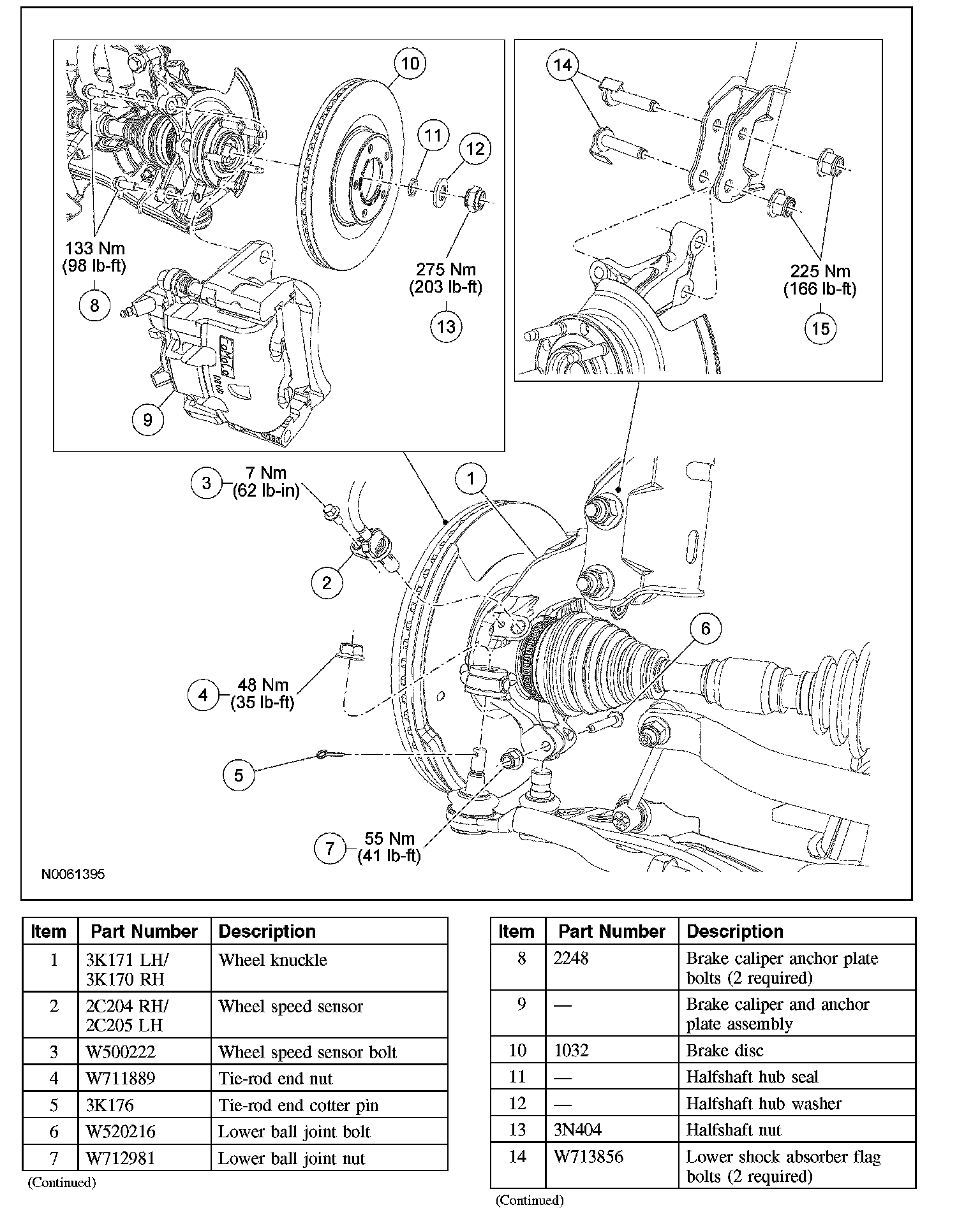 CAUTION: Suspension fasteners are critical parts because they affect performance of vital components and systems and their failure may result in major service expense. New parts must be installed with the same part numbers or equivalent part, if replacement is necessary. Do not use a replacement part of lesser quality or substitute design. Torque values must be used as specified during reassembly to make sure correct retention of these parts.