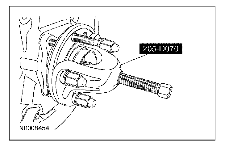 8. CAUTION: Do not tighten the halfshaft nut with the vehicle on the ground. The nut must be tightened to specification before the vehicle is lowered onto the wheels. Wheel bearing damage will occur if the wheel bearing is loaded with the weight of the vehicle applied.