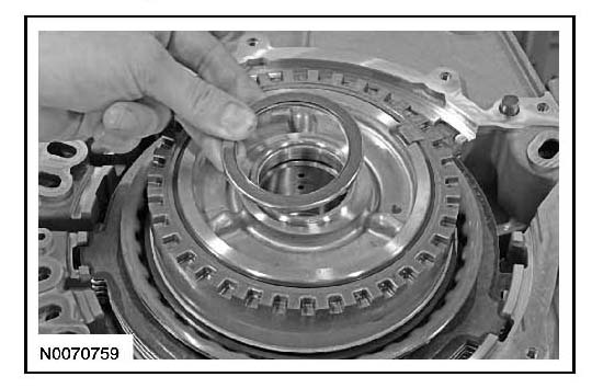 105. Install the overdrive/direct clutch hub and turbine shaft assembly.