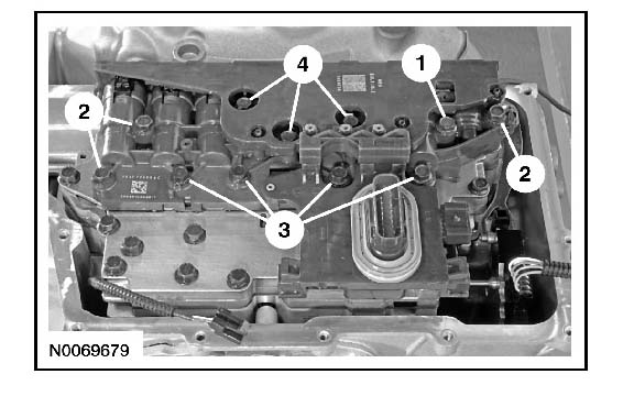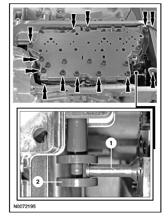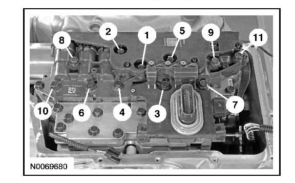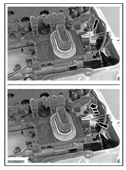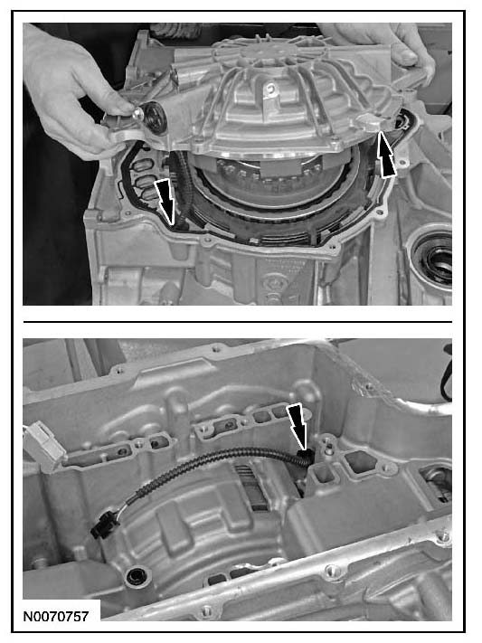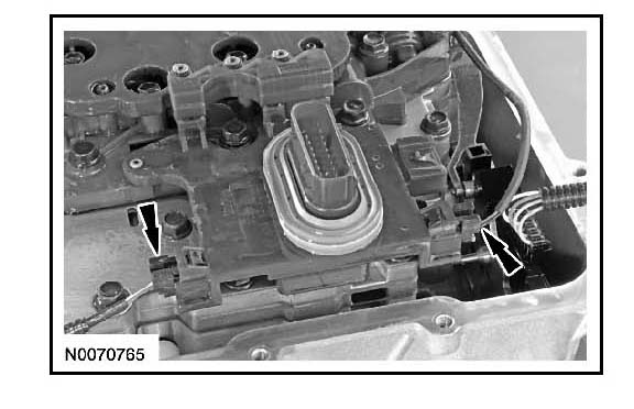 113. CAUTION: Make sure not to pinch the turbine shaft speed (TSS), output shaft speed (OSS) or transmission range (TR) sensor wiring harnesses behind the solenoid body when positioning the solenoid body in place.