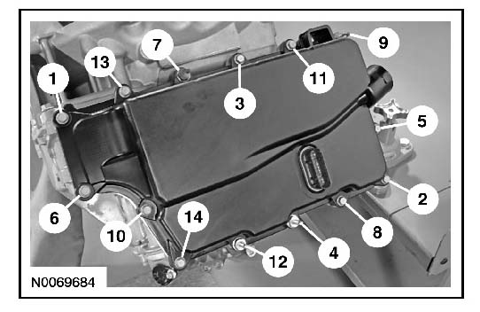 109. Install the cover assembly bolts and tighten the bolts in the sequence shown.