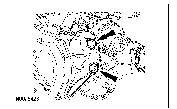 11. Using a long extension, loosen but do not remove the 2 LH side PTU-to-transaxle bolts.