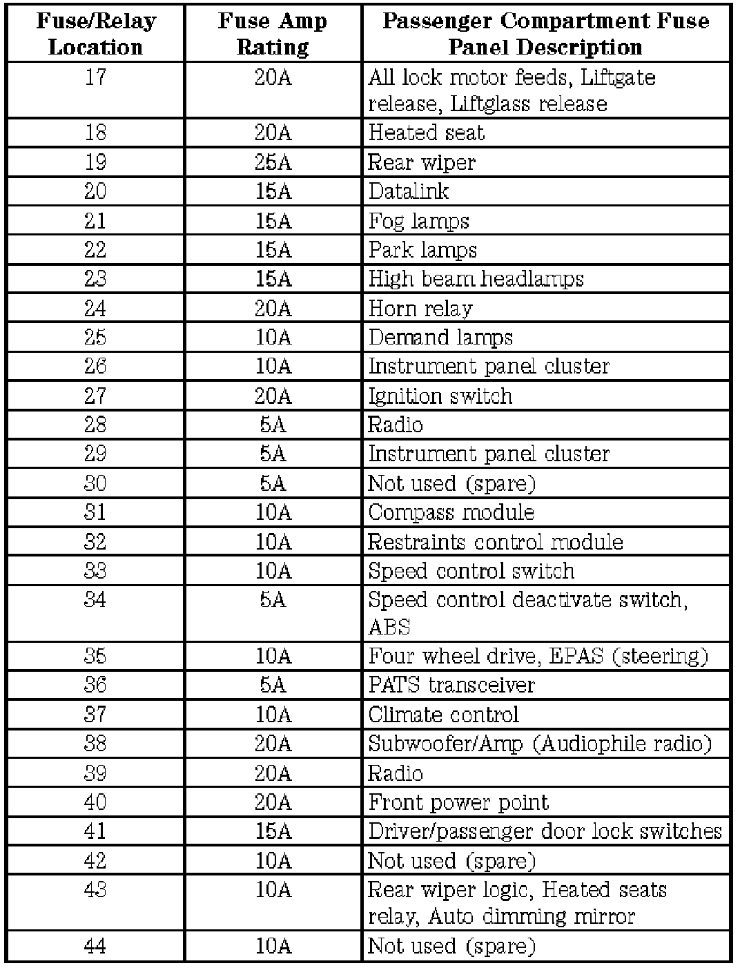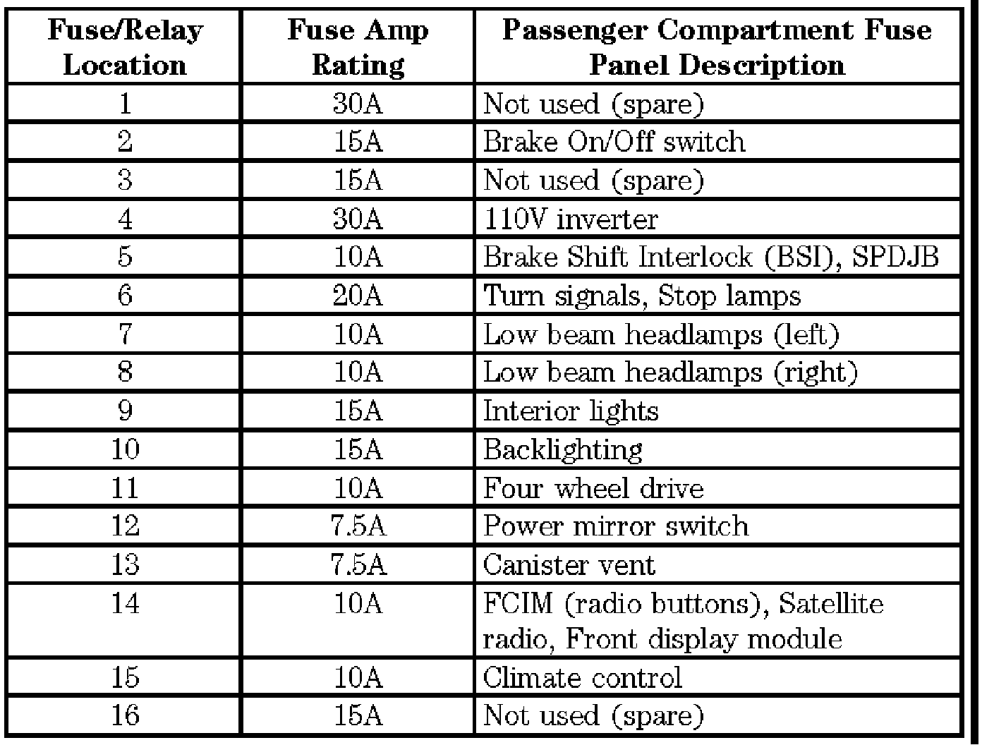 Passenger Compartment Fuse Panel