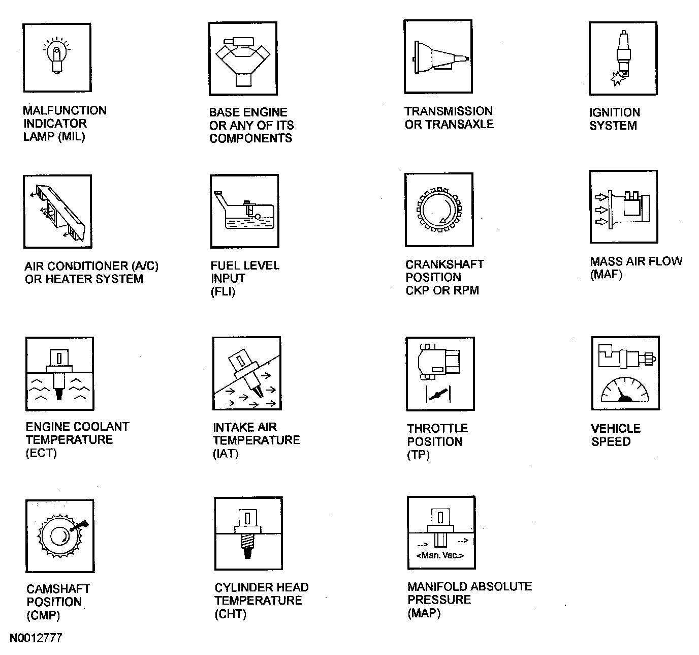 These icons are used in the illustrations of the OBD monitors and throughout.