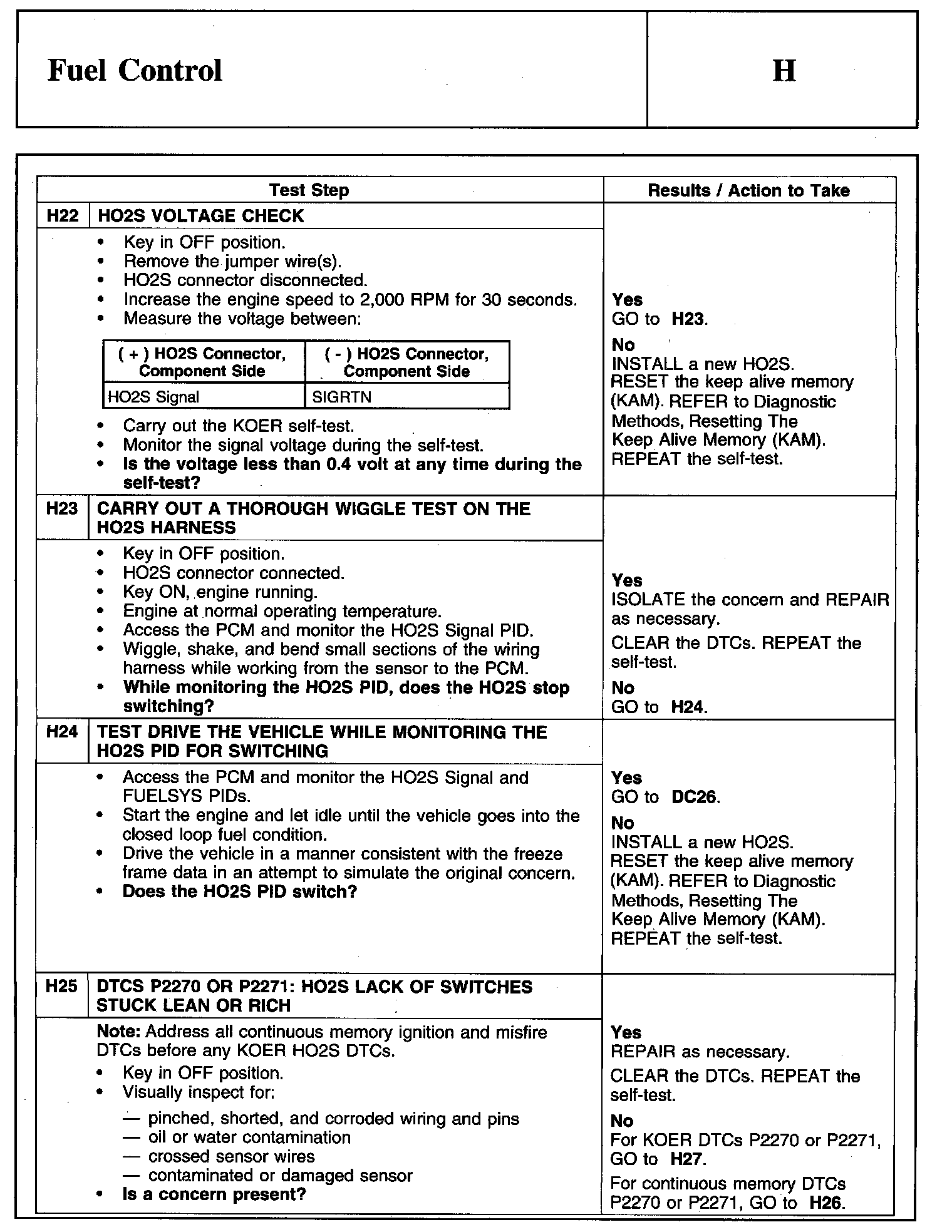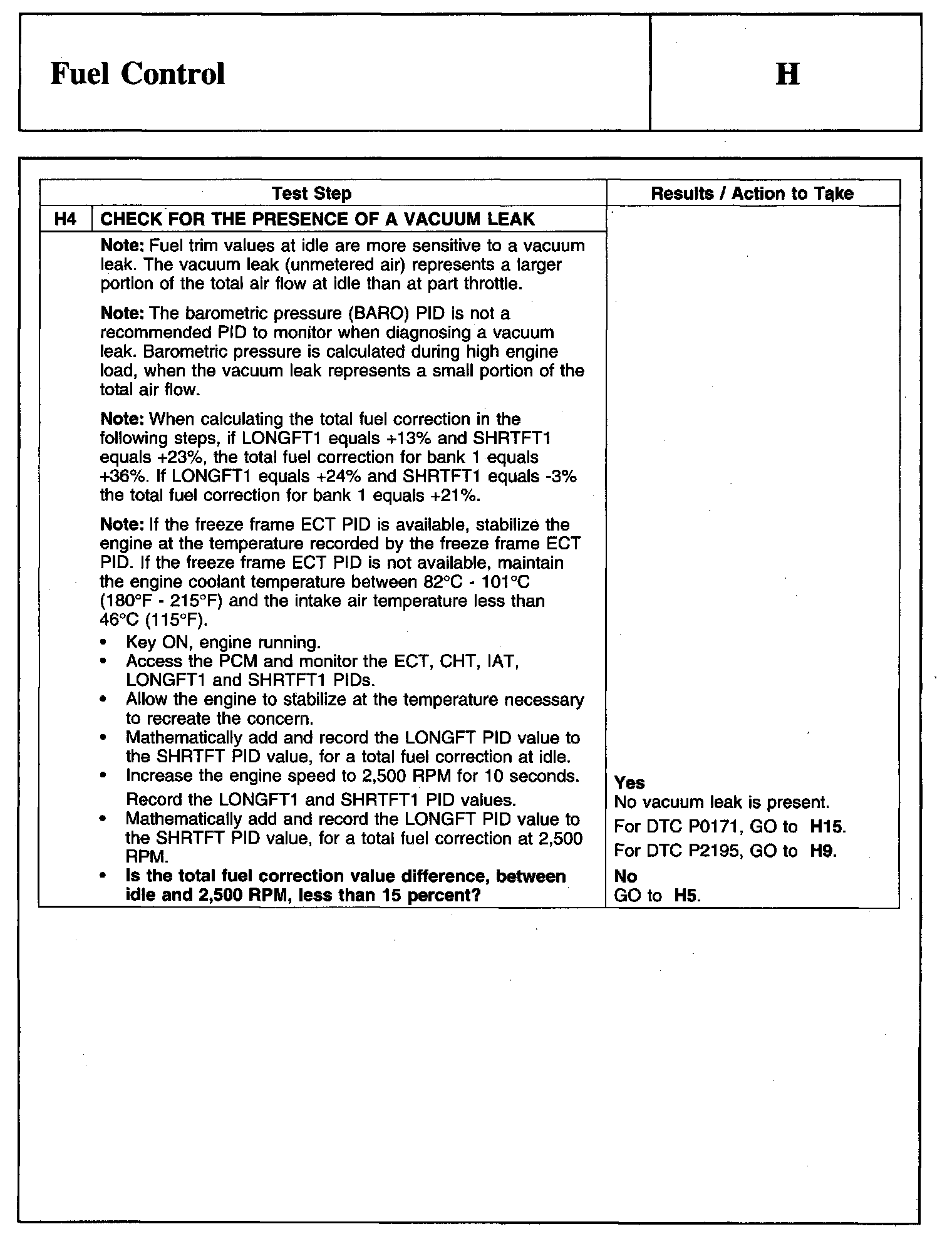PINPOINT TEST H: FUEL CONTROLWarnings And Important Safety Notice: