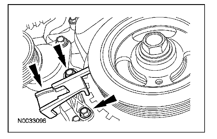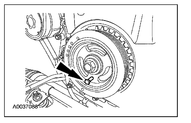 Install a new crankshaft pulley bolt. Using the special tools to hold the crankshaft pulley in place, tighten the crankshaft pulley bolt in 2 stages: