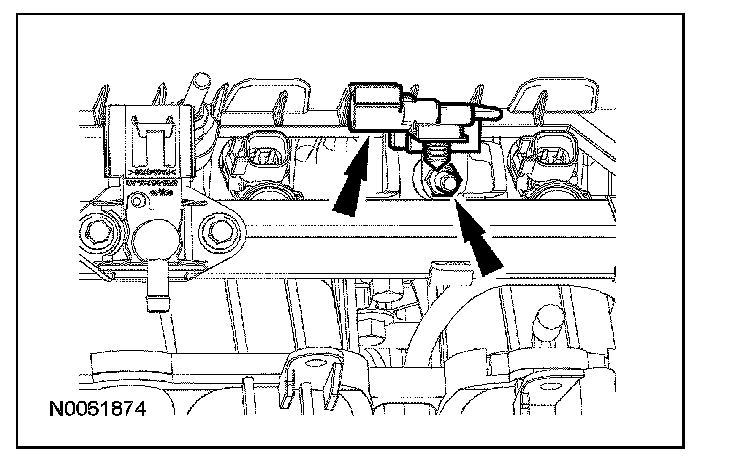 106. Connect the fuel rail pressure and temperature sensor electrical connector and vacuum tube.