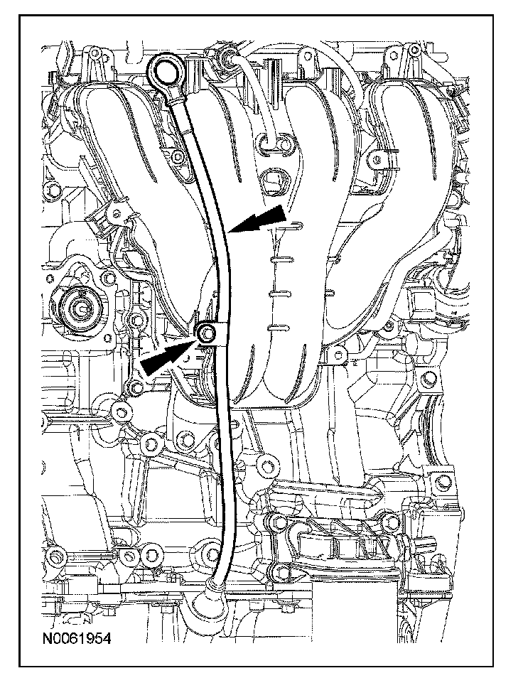 102. Position the intake manifold and connect the positive crankcase ventilation hose.