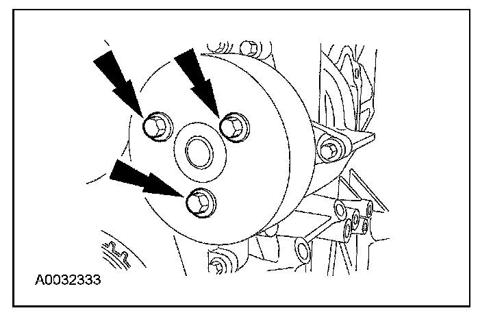 120. Install the 3 coolant pump pulley and bolts.