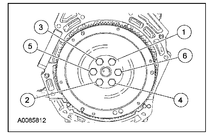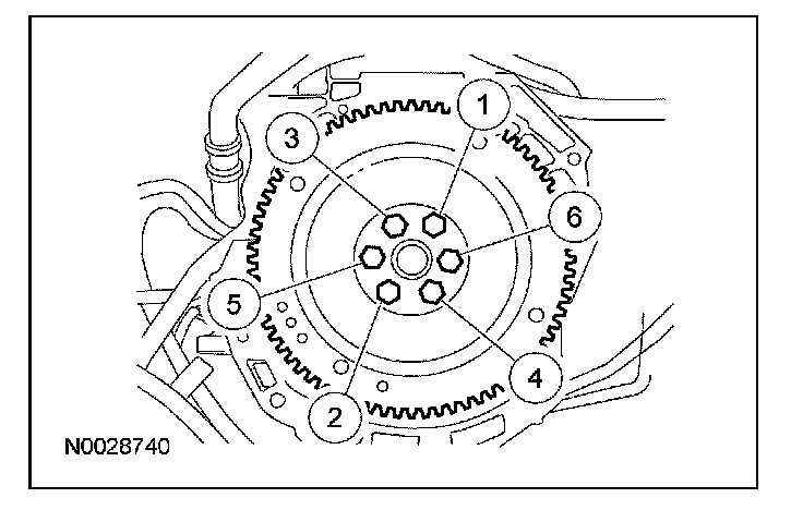 132. Install the flexplate and the bolts. Tighten the bolts in the sequence shown in 3 stages: