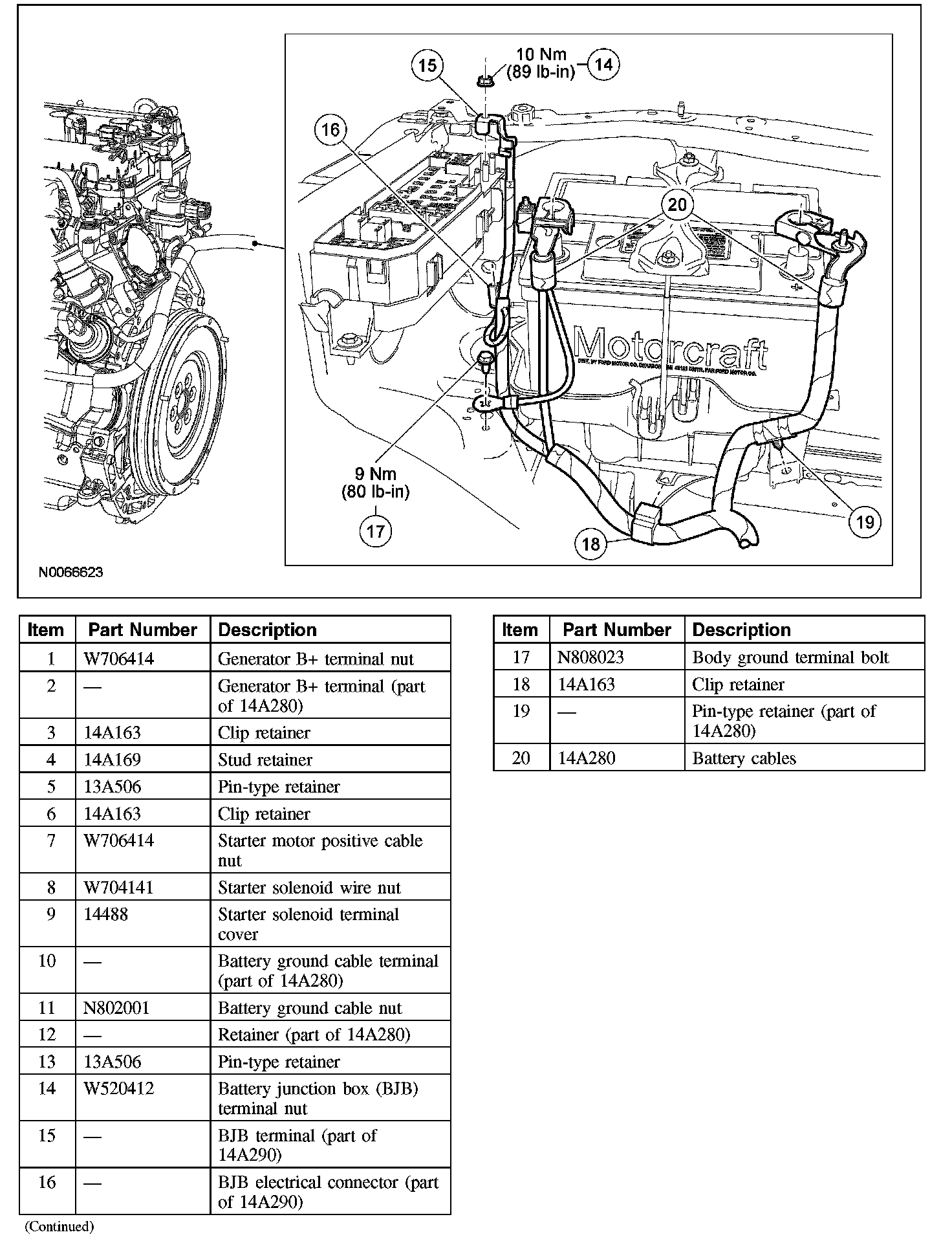 21. Disconnect the retainers fastening the battery cables to the battery tray.