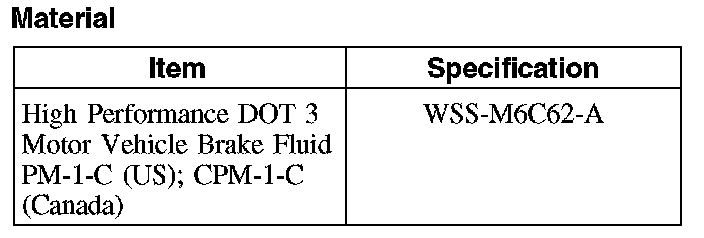 CAUTION: Brake fluid is harmful to painted and plastic surfaces. If brake fluid is spilled onto a painted or plastic surface, immediately wash it with water.