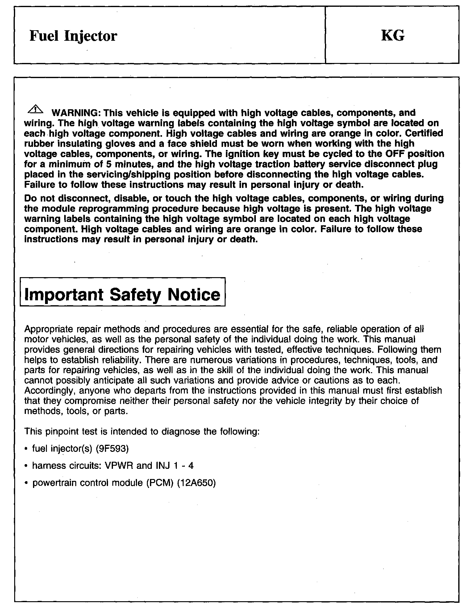 Tests KG: Fuel Injector