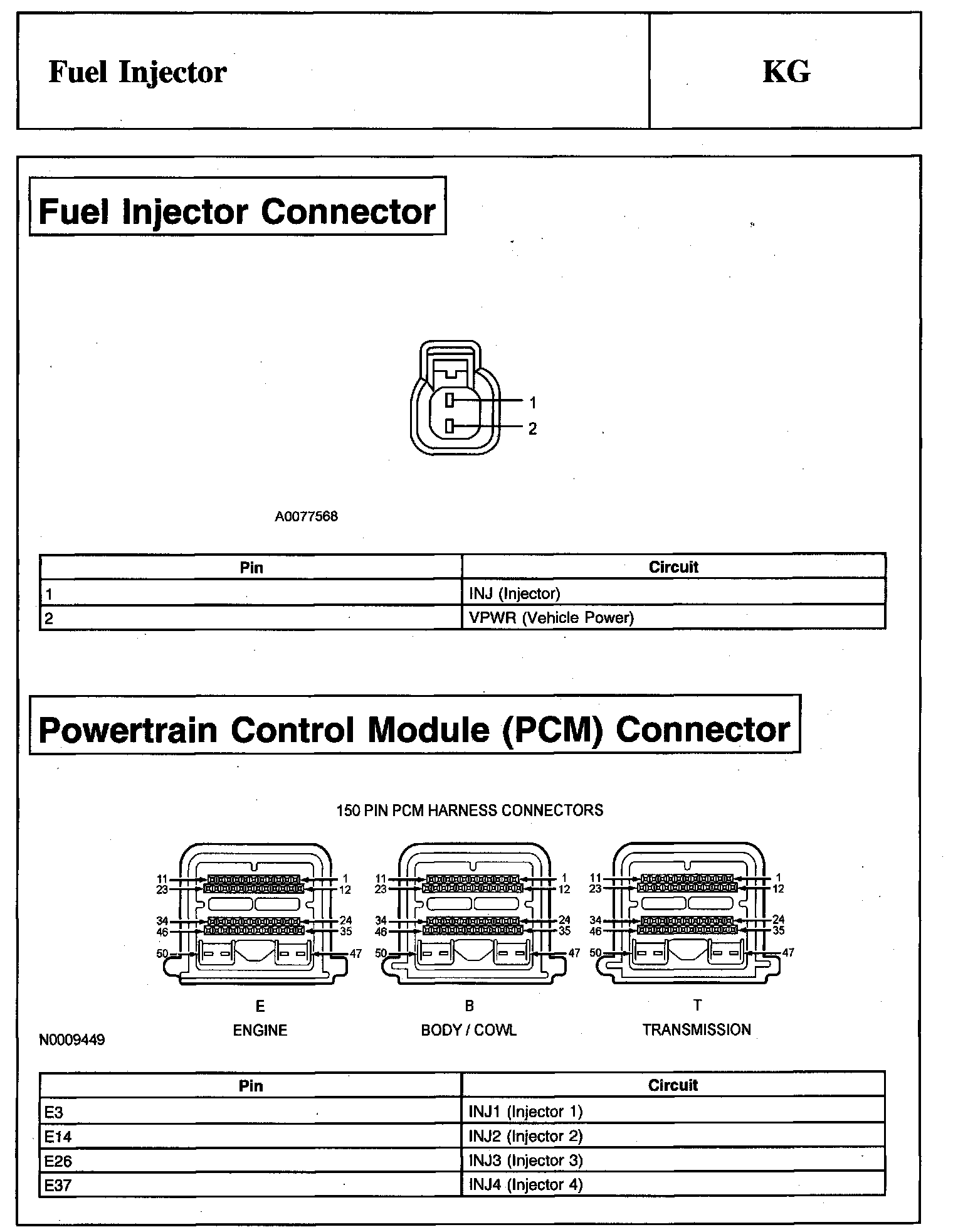 Fuel Injector Connector And Powertrain Control Module (PCM) Connector: