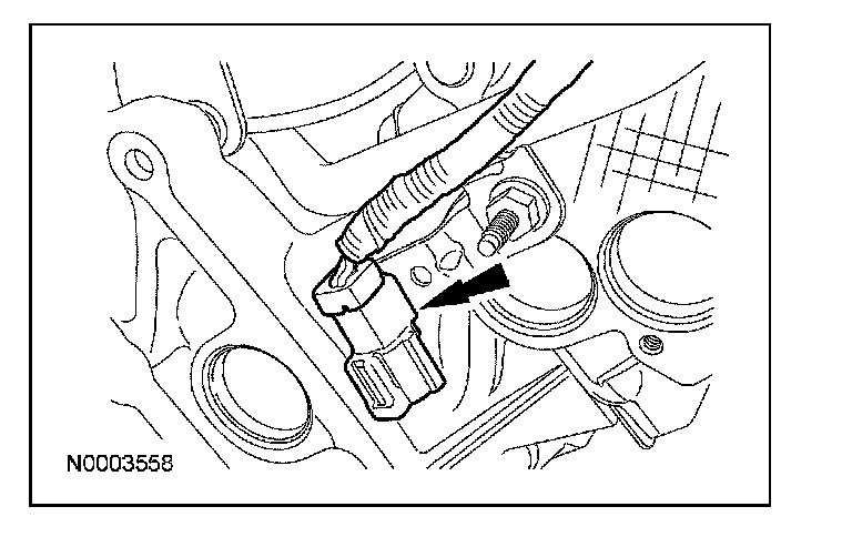 Disconnect the RH and LH variable camshaft timing (VCT) solenoid electrical connector.