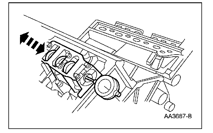 4. Move the camshaft to the front of the cylinder head. Note and record the camshaft end play.