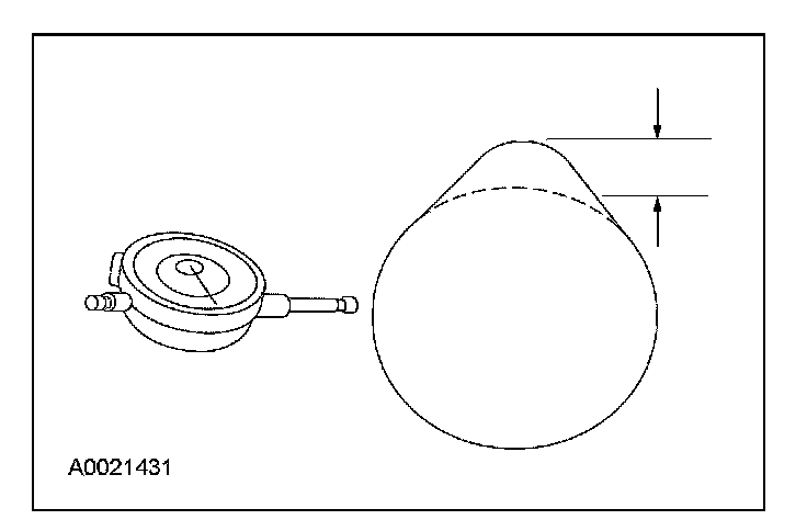 ^ Rotate the camshaft and subtract the lowest indicator reading from the highest indicator reading.