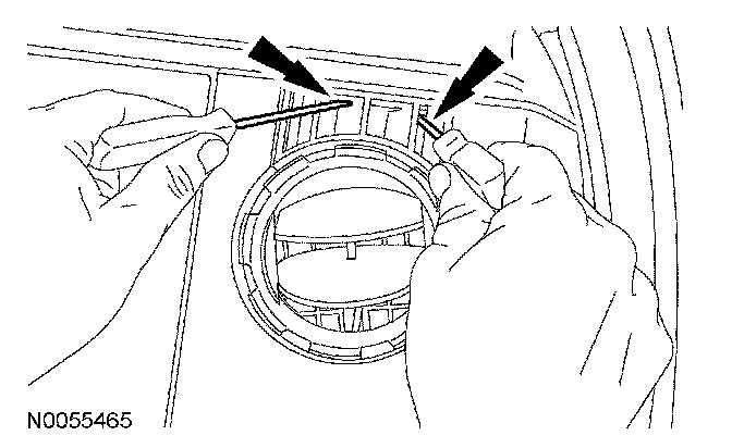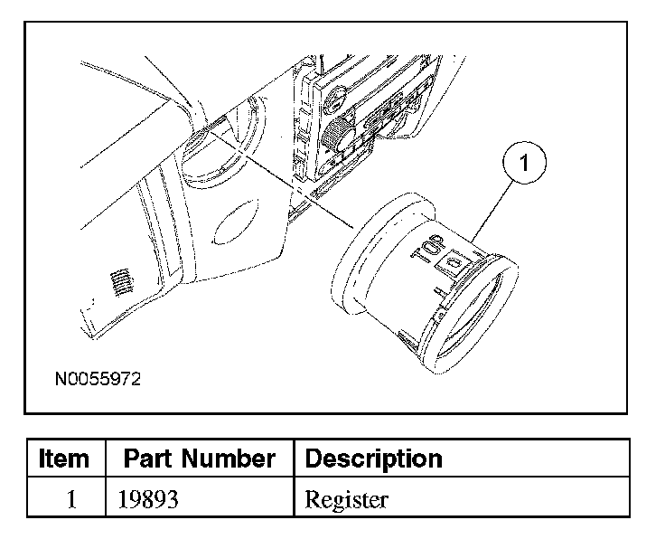 5. Working through the instrument panel opening, depress the 2 clips on the sides of the register barrel and tilt the bottom of the register outward to keep the clips from re-engaging.