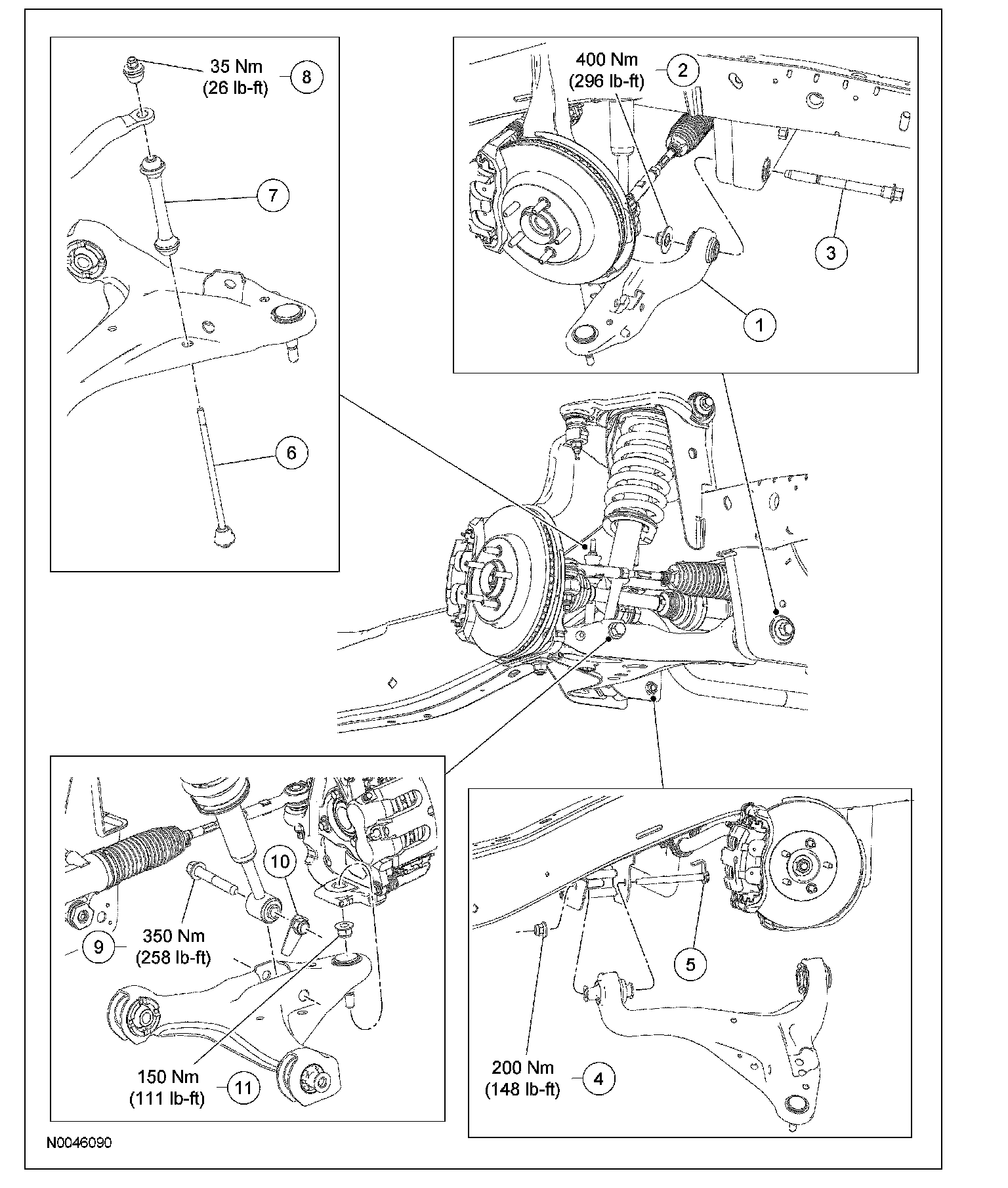 9. Tighten the lower arm rearward nut to 200 Nm (148 lb-ft).