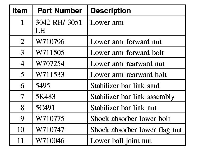 CAUTION: Suspension fasteners are critical parts because they affect performance of vital components and systems and their failure may result in major service expense. New parts must be installed with the same part numbers or equivalent part, if replacement is necessary. Do not use a replacement part of lesser quality or substitute design. Torque values must be used as specified during reassembly to make sure of correct retention of these parts.