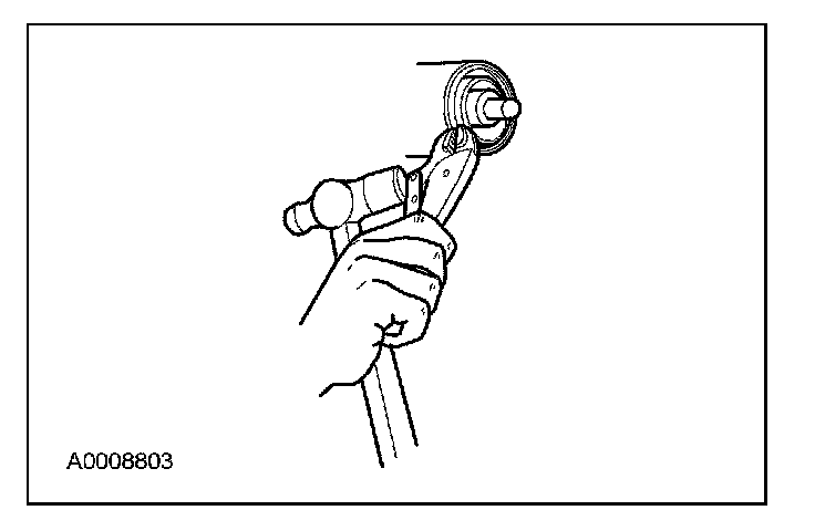 8. If necessary, use a screwdriver to force up the metal flange of the pinion seal. Install gripping pliers and strike with a hammer to remove the drive pinion seal.