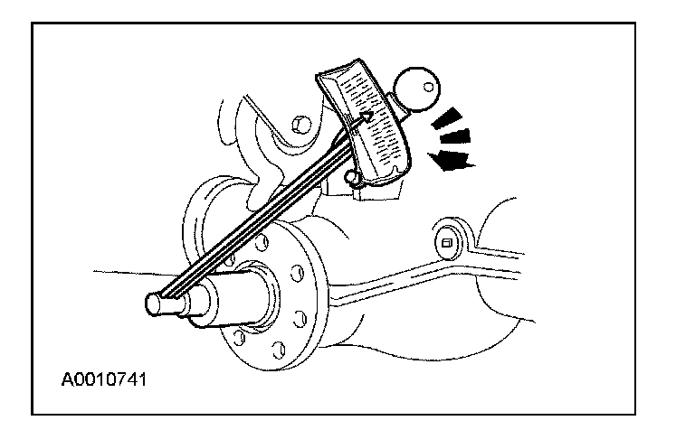 ^ Rotate the drive pinion gear occasionally to make sure the drive pinion bearings seat correctly. Take frequent drive pinion bearing preload readings by rotating the drive pinion gear with a Nm (lb-inch) torque wrench.