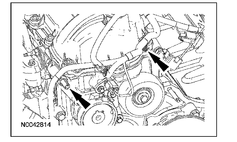 Disconnect the RH and LH variable camshaft timing (VCT) solenoid electrical connectors.