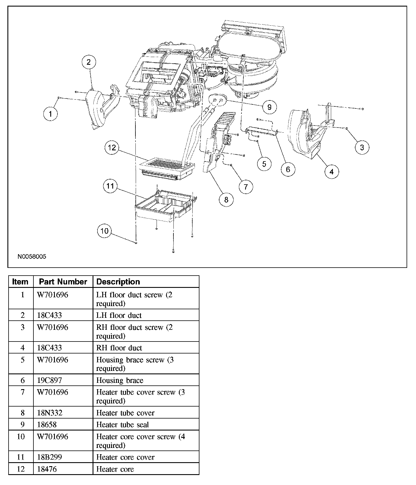 1. Remove the heater core and evaporator core housing. Service and Repair