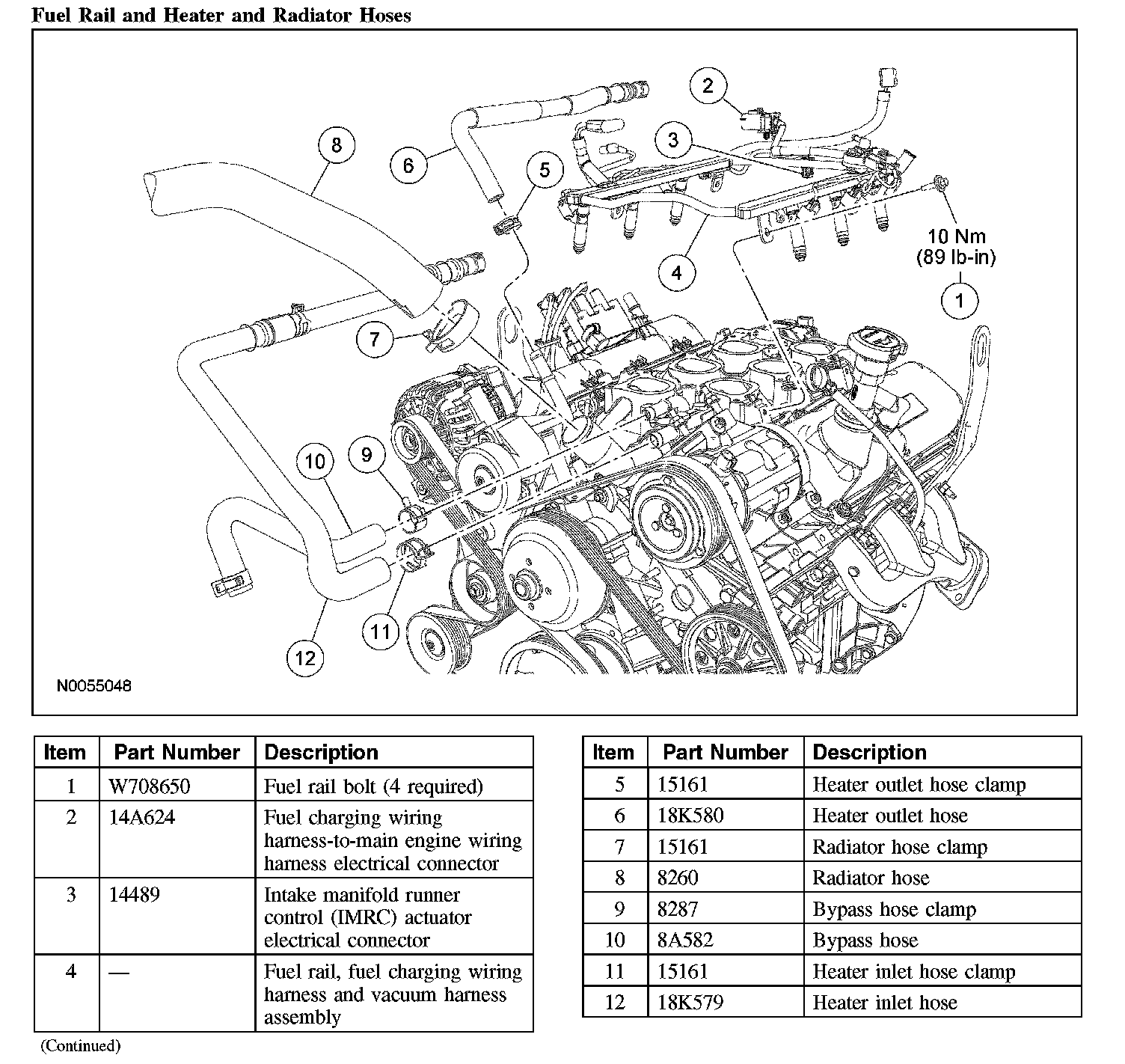 Fuel Rail and Heater and Radiator Hoses: