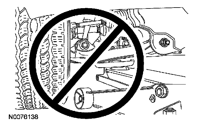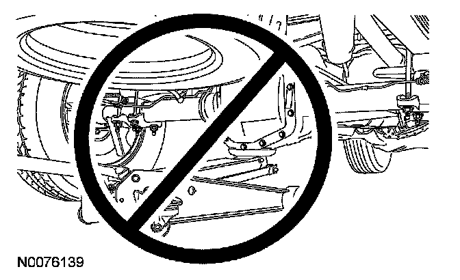 CAUTION: Do not use the control arm as a jacking point. Damage to the vehicle may occur.