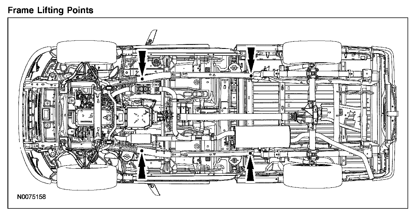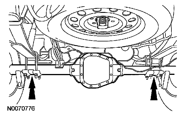 CAUTION: Do not use the differential housing as a lift point. Leaks or damage to the rear axle cover and adjoining differential housing surface may occur if a floor jack or any lifting device is allowed to contact the cover at any point where the cover joins the housing.