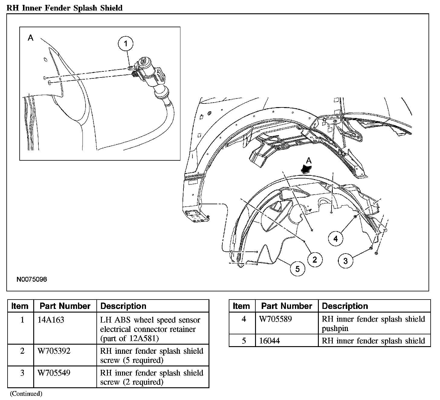 3. If necessary, remove the 6 screws, the pushpin and the RH inner fender splash shield.
