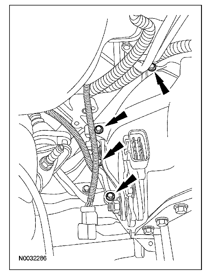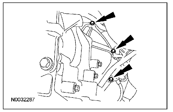 6. NOTE: Install the transmission retaining bolts in their correct locations made during removal.