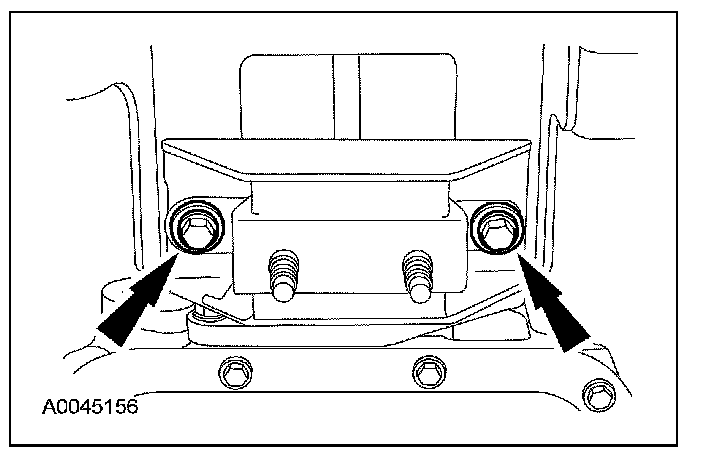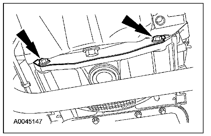 15. Install the bolts retaining the exhaust hanger to the crossmember.