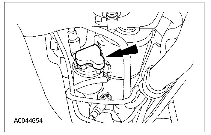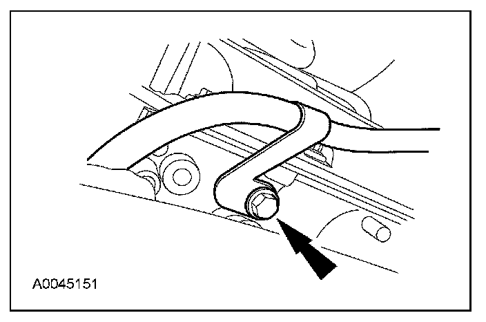 16. Position the transmission fluid fill tube into the transmission and install the retaining bolt on the RH cylinder head.