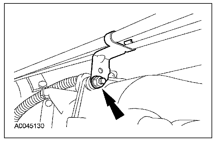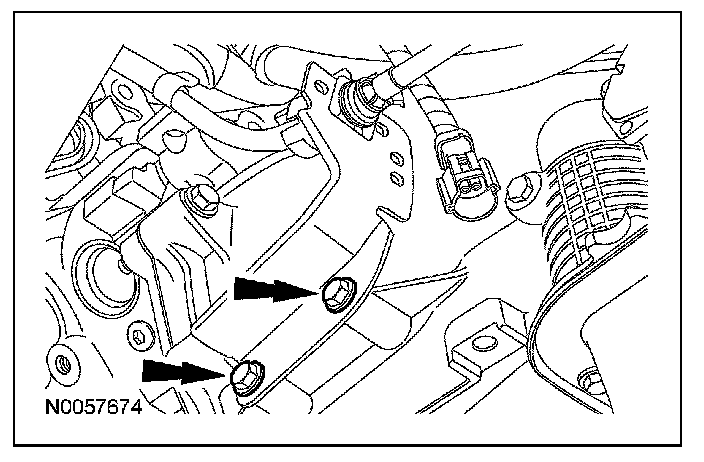 25. CAUTION: Failure to route the selector lever cable in the routing clip can allow the selector lever cable to rest on exhaust components, causing damage to the cable.