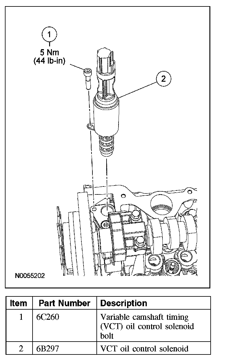 VARIABLE CAMSHAFT TIMING (VCT) OIL CONTROL SOLENOIDRemoval and Installation